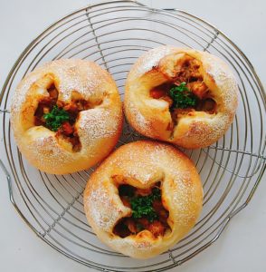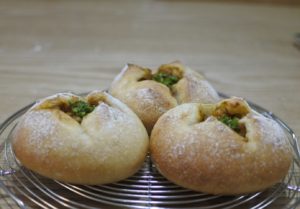 ふんわり、もっちり湯種生地で「焼きカレーパン」を作ります。